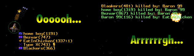 Bezwar and I were onboard thismorning for the biggest turret I've seen! I was in from the start, killed at 545, disconnected at 219 then finally the weight of a 5000 odd bounty turret became to much. To a Baron unfortunately... Bet Perp was pissed that he missed that one. EatInChicken survived a while longer though, and Type X may have as well - I was too busy pressing the PrtScr button to notice. Nice driving Home Boy!